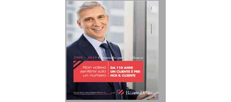 Sono queste le basi su cui è stata concepita la nuova campagna di comunicazione del Gruppo, ideata dall’agenzia milanese Jolie Advertising e dedicata specificamente al centodecimo compleanno. Gli annunci, unificati dal concept “Chiamala ancora banca”, riaffermano la vocazione di Banco Desio a sostegno delle famiglie e delle imprese: dando voce direttamente al cliente, con l’affermazione “Non volevo sentirmi solo un numero” la campagna racconta la specifica visione della propria attività e del proprio ruolo: quello di strumento a disposizione della comunità per realizzare progetti personali e imprenditoriali; il tutto per mezzo di un insieme di persone che conoscono i propri clienti e sanno instaurare con loro un dialogo vero, finalizzato a conoscere i loro bisogni e risolverne i problemi.