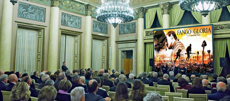 Proseguono le presentazioni di “Fango e Gloria”, il film sulla prima guerra mondiale prodotto grazie anche al contributo del Banco Desio. Nel febbraio scorso, nell’ottocentesco Salone d’Oro del Circolo della Società del Giardino in Milano, i soci dell’importante istituzione milanese hanno assistito ad una proiezione loro riservata dell’opera cinematografica sulle vicende del primo conflitto mondiale. Alla serata erano presenti il produttore Maurizio Tedesco e il regista del film Leonardo Tiberi, che hanno introdotto il film.