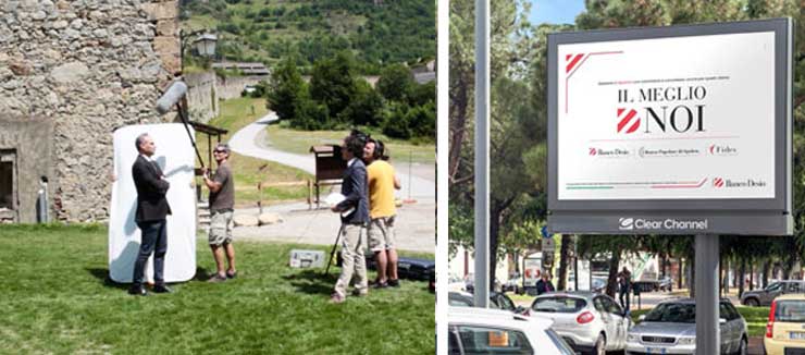 Nei diversi soggetti sviluppati per la campagna stampa Il Meglio D Noi viene messo a disposizione per offrire sostegno alle piccole e medie imprese, a difesa del made in Italy e per esprimere alle famiglie la volontà di stare sempre vicine ai loro progetti. E questa dichiarazione di disponibilità ad offrire il massimo possibile vede accumunati , in modo chiaro e paritetico, i tre loghi che appartengono al Gruppo Banco Desio: Banco Desio, Banca Popolare di Spoleto e Fides. La campagna è on-air in queste settimane su affissioni e mezzi stampa, ma presto diventerà anche un film.