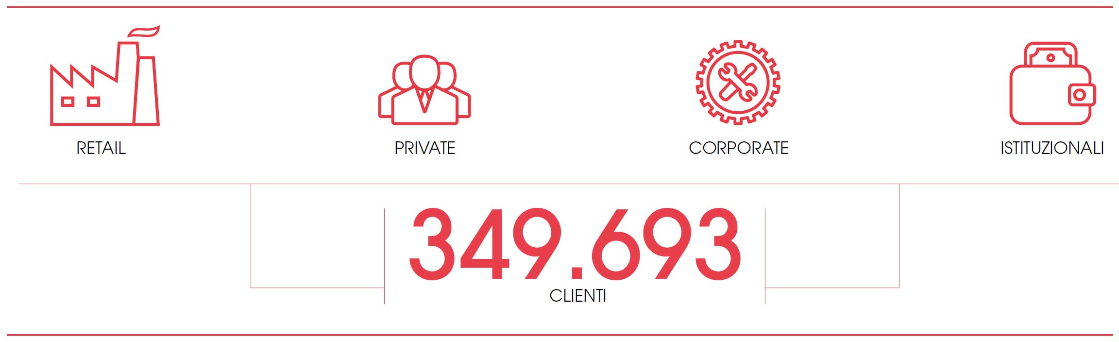 - Mercato Private e Corporate, che comprende i clienti privati con patrimonio superiore a 500 migliaia di euro e le imprese con fatturato superiore a 50 milioni di euro.