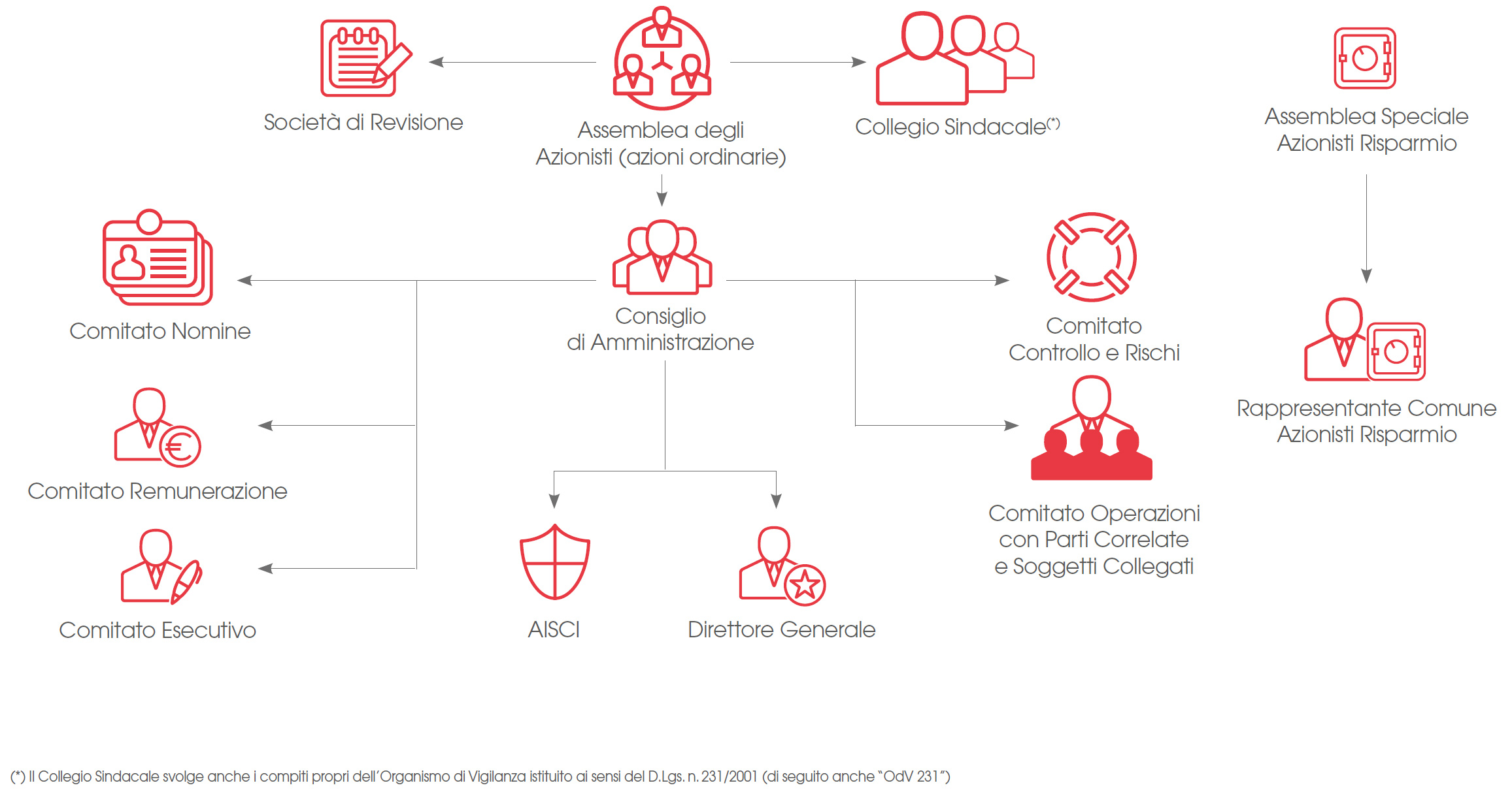La struttura organica del governo societario del Banco al 31 dicembre 2019 è rappresentata schematicamente nel modo seguente: