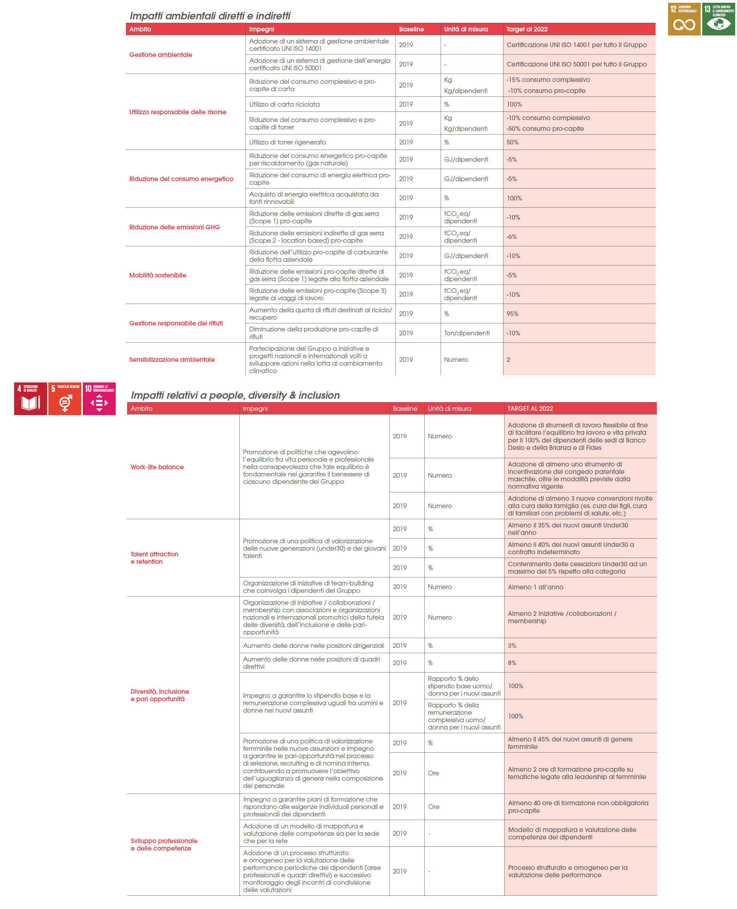 - Attuazione delle iniziative finalizzate al perseguimento dei target del “Piano di Sostenibilità 2020-22” con relativo monitoraggio